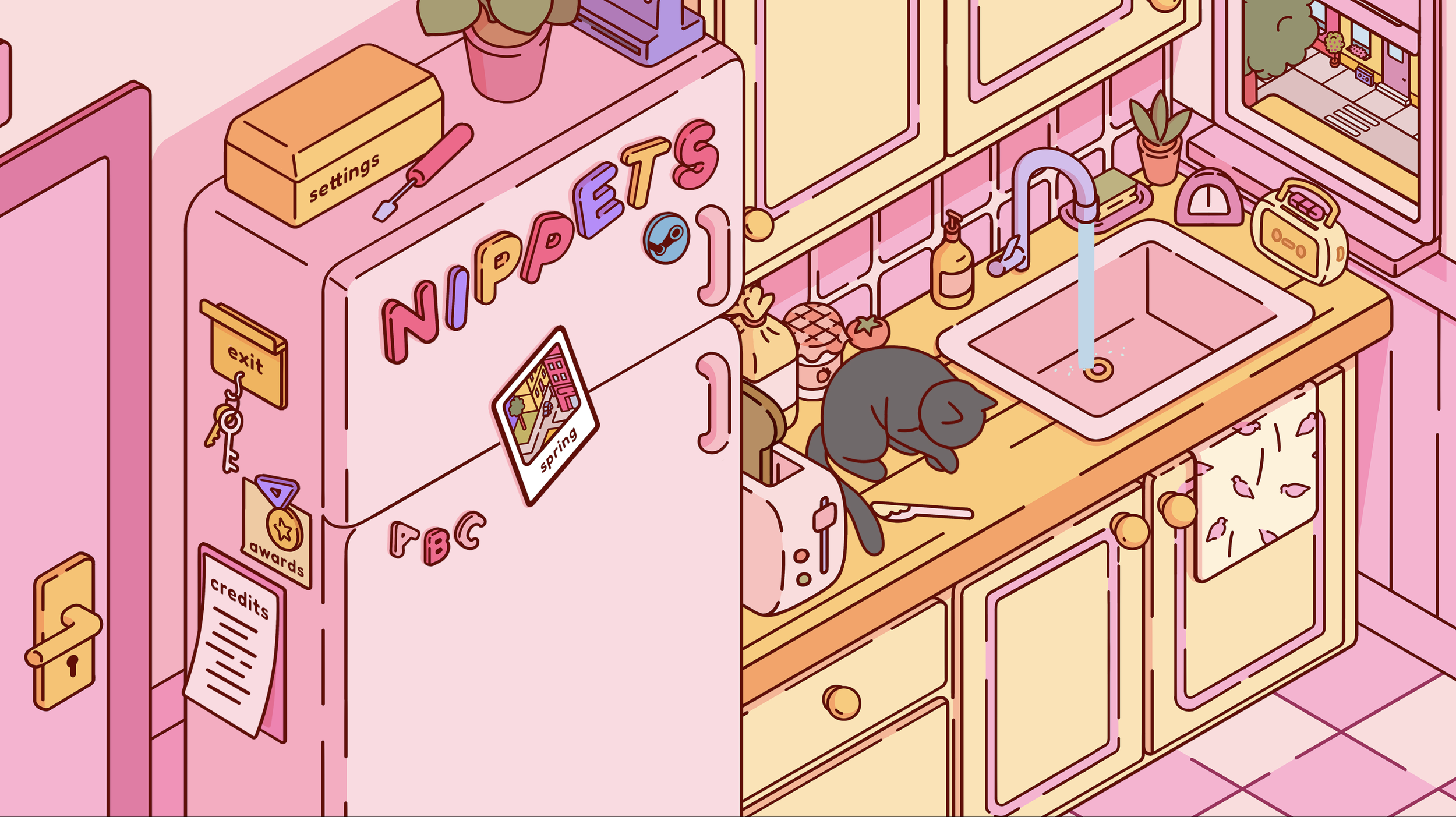 I worked as the art director on Nippets for 3 months, realising ideas and sketches into full colour backgrounds with lots and lots of interactive elements. I also had the opportunity to design the main menu and work on the game UI. Nippets is available to add to your Steam wishlist now and will be released in Spring 2026.